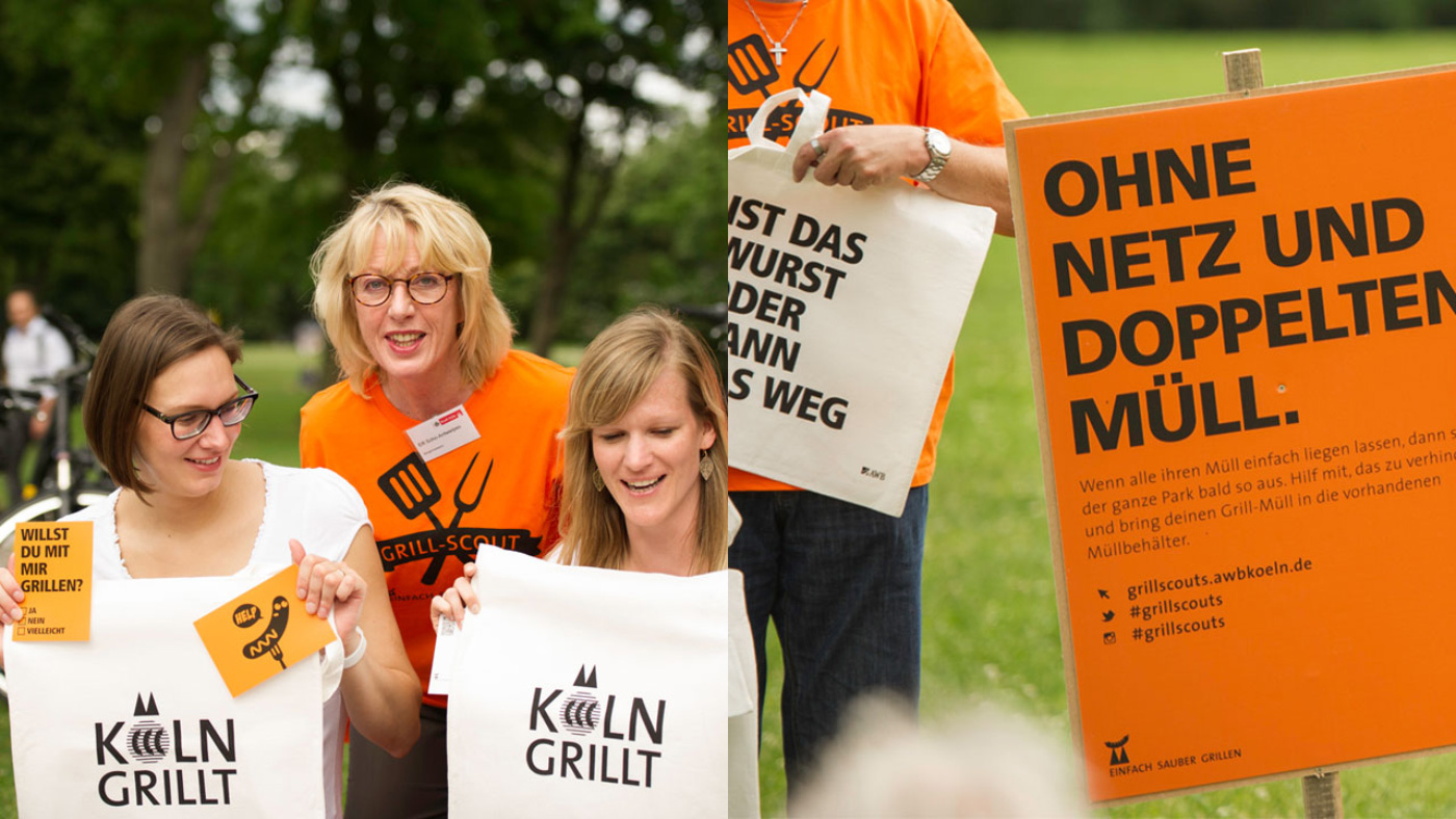 Die Abfallwirtschaftsbetriebe Köln (AWB) sind unter anderem zuständig für die Sauberkeit in den vielen Parks der Domstadt. An einem einzigen Wochenende in der Frühlings- und Sommerzeit entstehen durchschnittlich 20 Tonnen zusätzlicher Müll. Die Grill-Scouts sind seit 2011 im Einsatz, um die Kölner Grünflächen sauber zu halten.