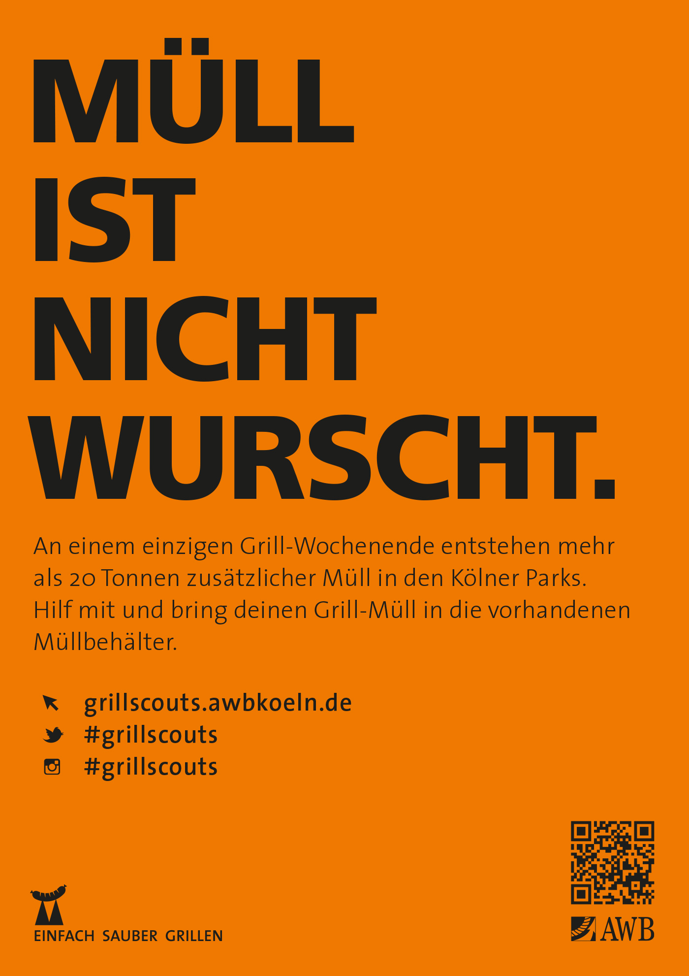 Entwicklung einer Kampagne, mit deren Hilfe die in Köln bereits bekannten AWB Grill-Scouts das vorwiegend jugendliche Publikum dazu motivieren sollen, seine Abfälle sachgerecht zu entsorgen.