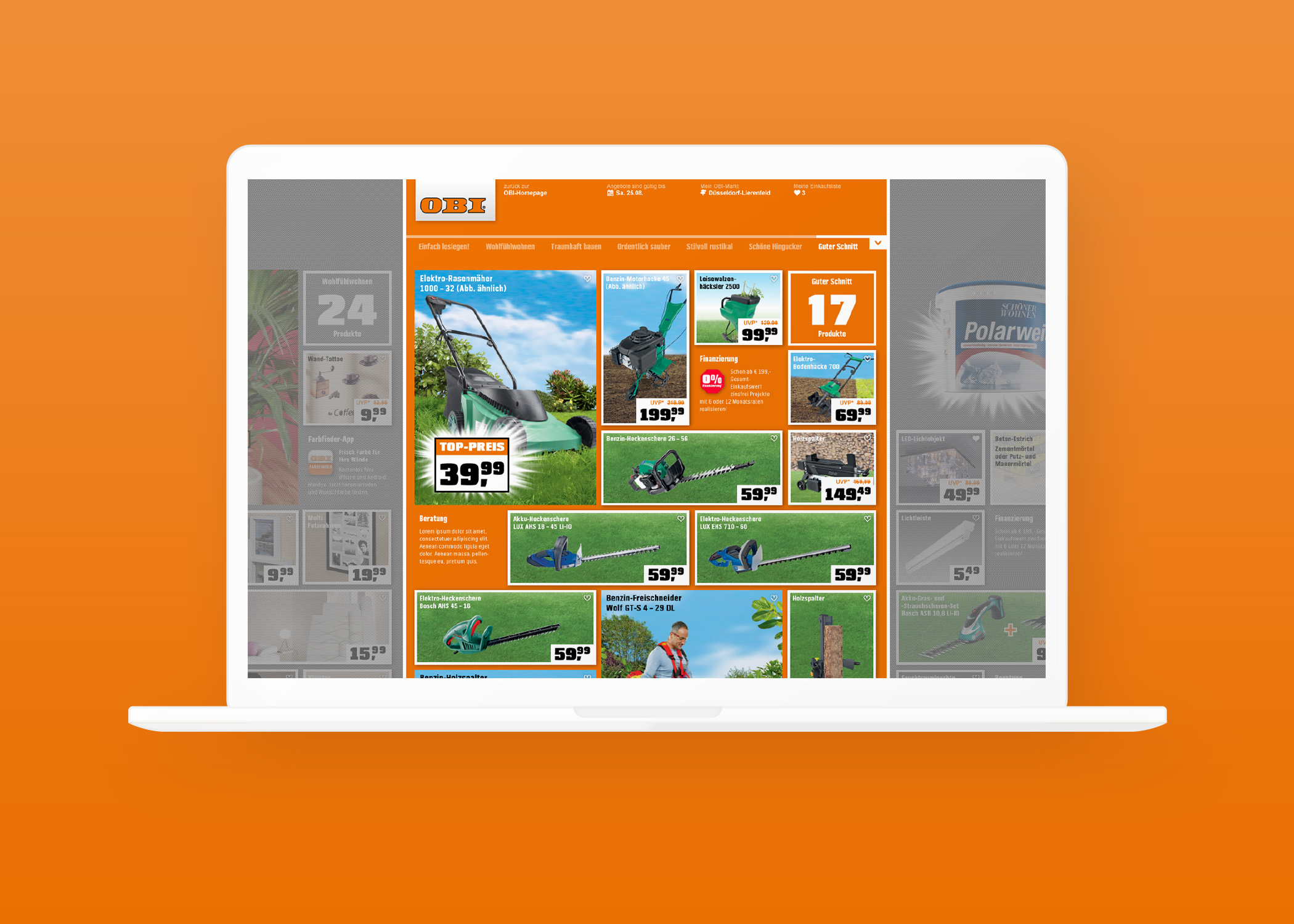 OBI versorgt bundesweit Millionen von Haushalten mit seinen TZ-Beilegern. Kontrast wird mit der Erstellung der Beilagen sowie der regionalen Werbemedien betraut und erstellt dazu ein grafisch aufbereitetes Konzept.