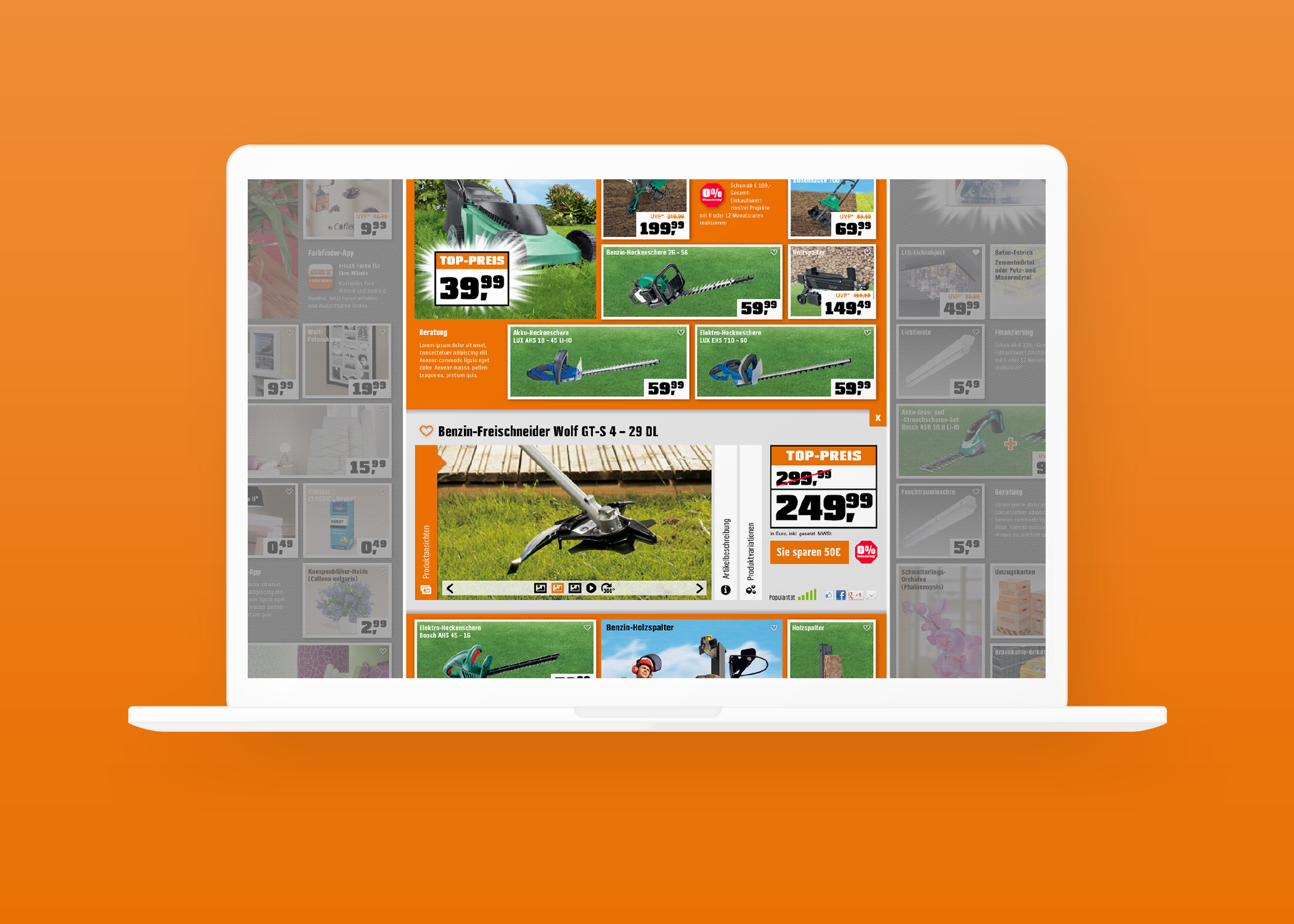 Dieses Know-how machen wir uns zu nutze und digitalisieren den Print-Prospekt. Dabei halten wir uns weitestgehend an den Mechanismus der Printversion und versuchten auch das Raster zu übernehmen.