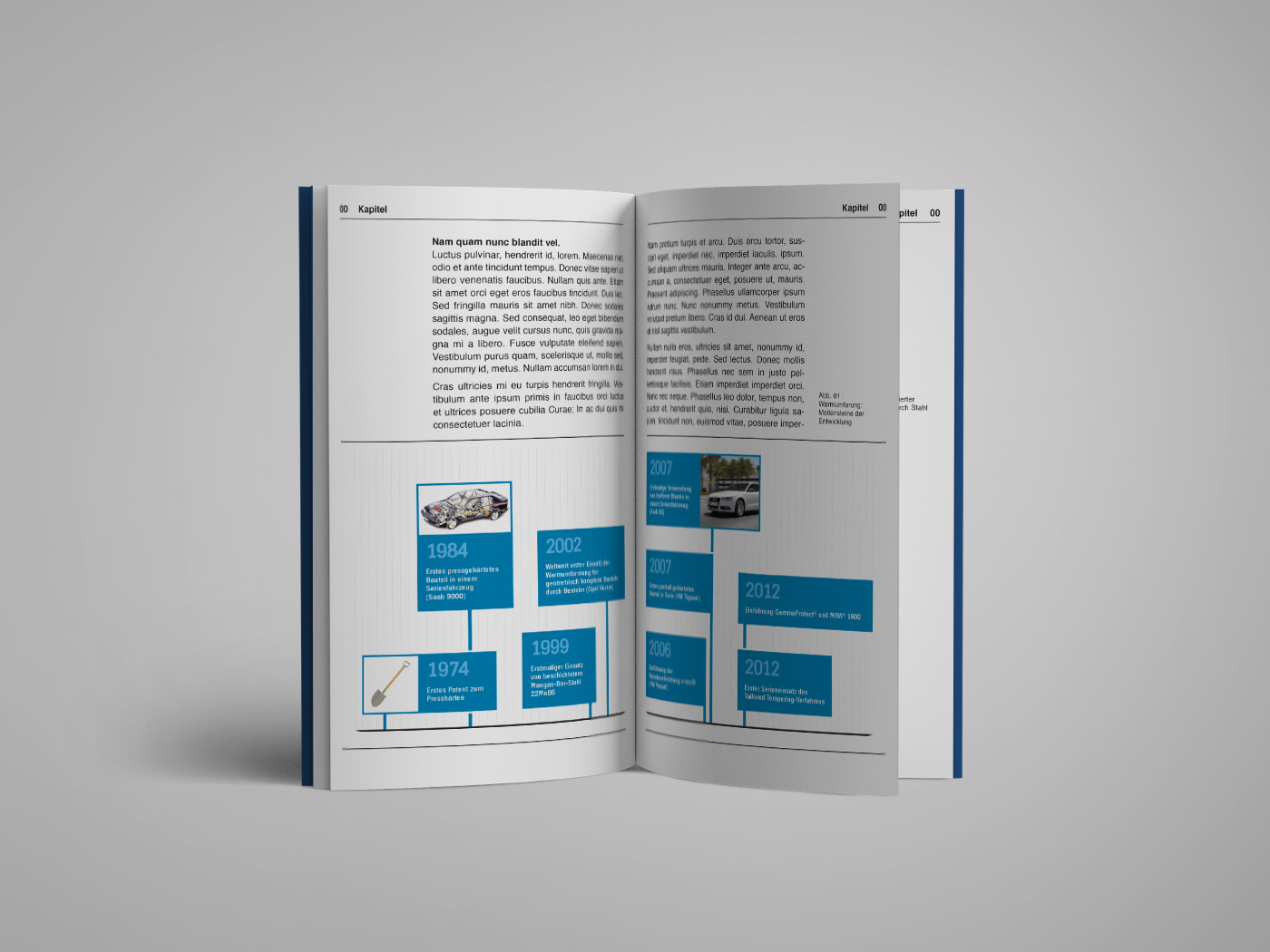 Der von TKSE aufgelegte Band widmet sich dem Thema Warmumformung von Flachstählen. Klingt kompliziert und ist es auch und darum sollen in dem Werk ästhetisch ansprechende Grafiken komplexe Sachverhalte visualisieren.