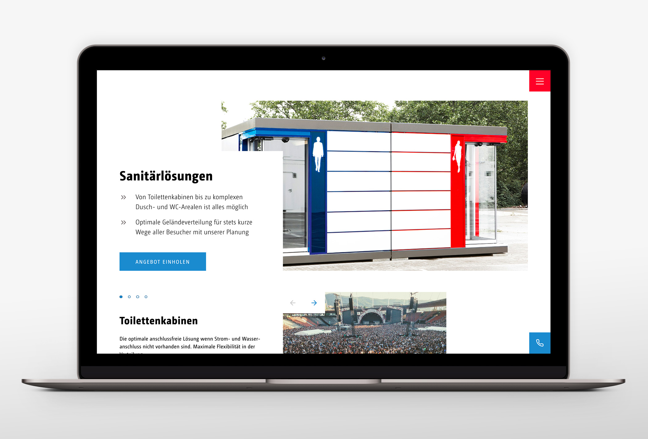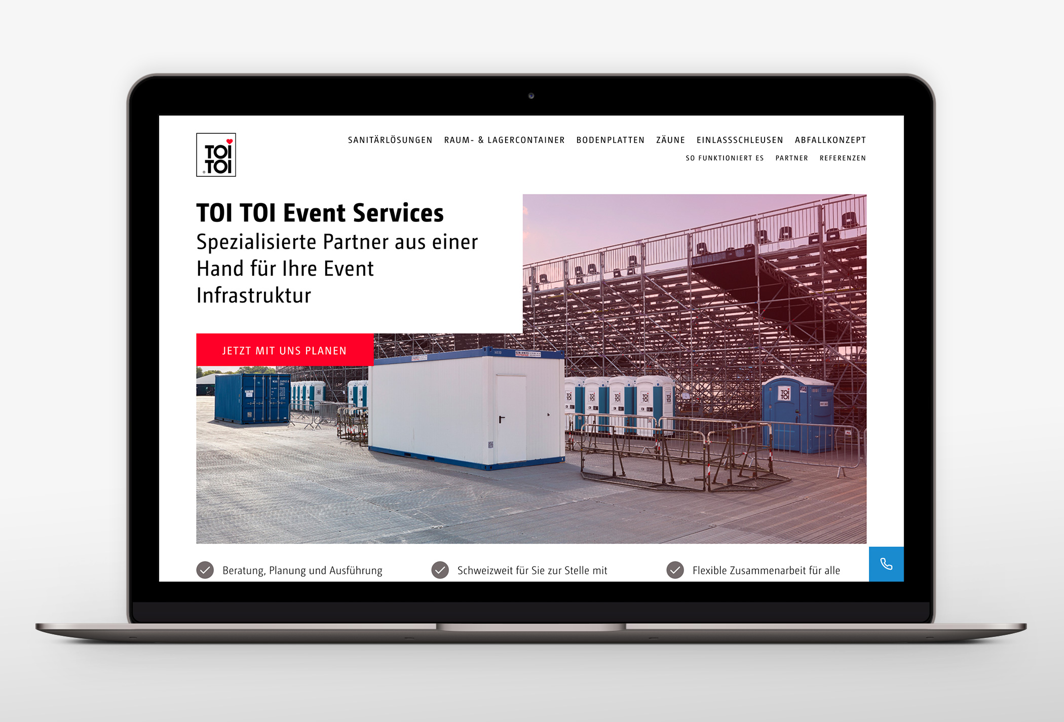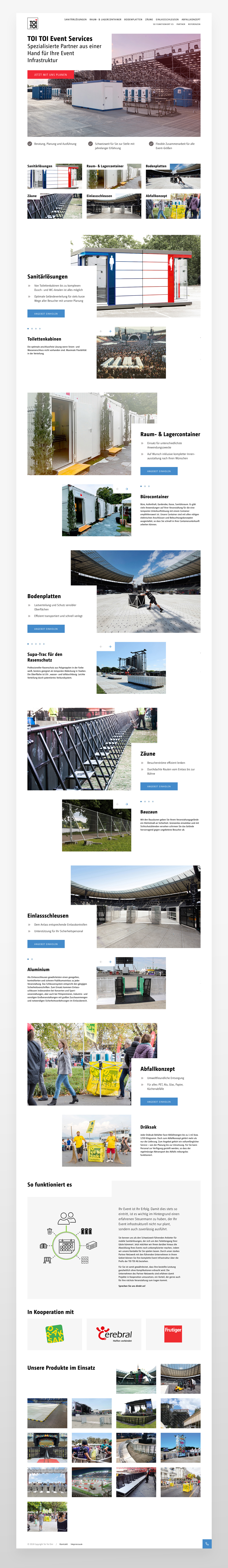 Für den Schweizweiten Markt wurde eine Microsite entwickelt, die das komplette Angebot aufzeigt, mit der die TOI TOI Event Services als Spezialisierter Partner die Infrastruktur für ein Event aus einer Hand abdeckens.