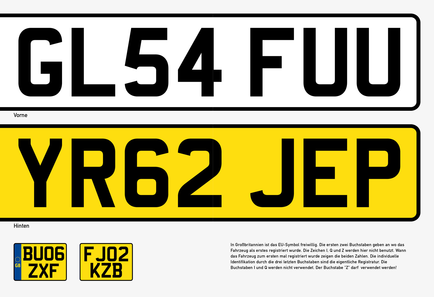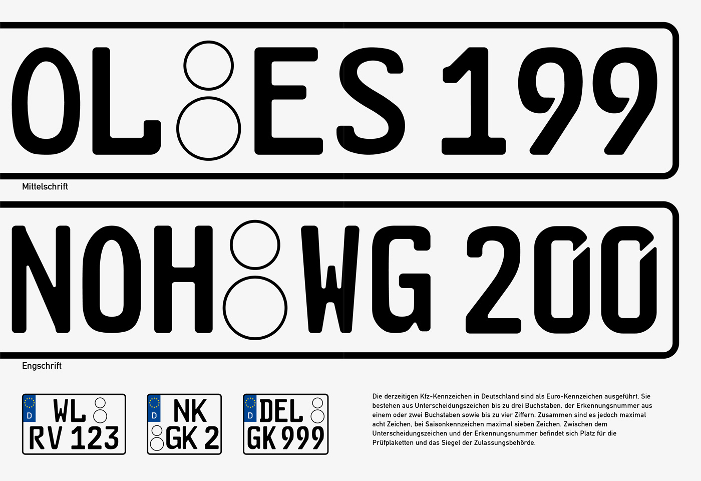 Ich habe mir den europäischen Vergleich von Typo, Zahlen, Pfeilen und die verschiedenen Typografien der Kennzeichen raus gepickt und durchleuchtet. Dabei sind, auf das wesentliche reduzierte, grafische Abbildungen entstanden.