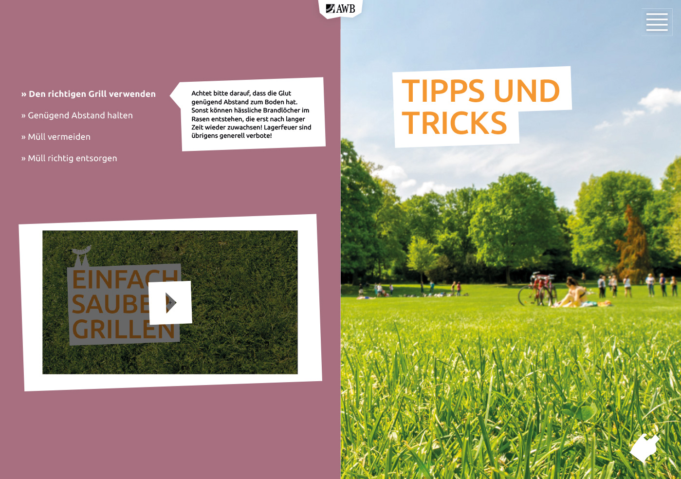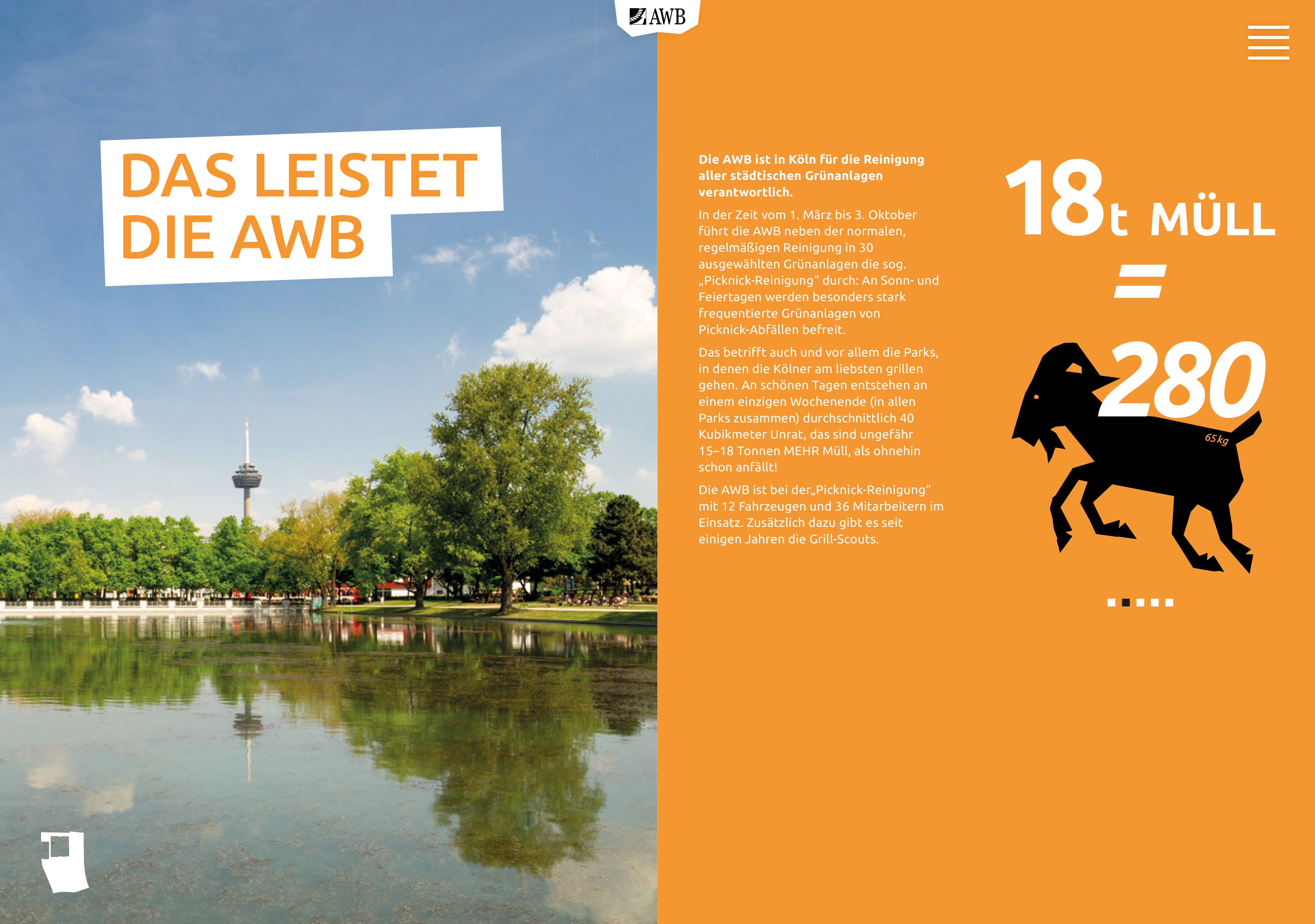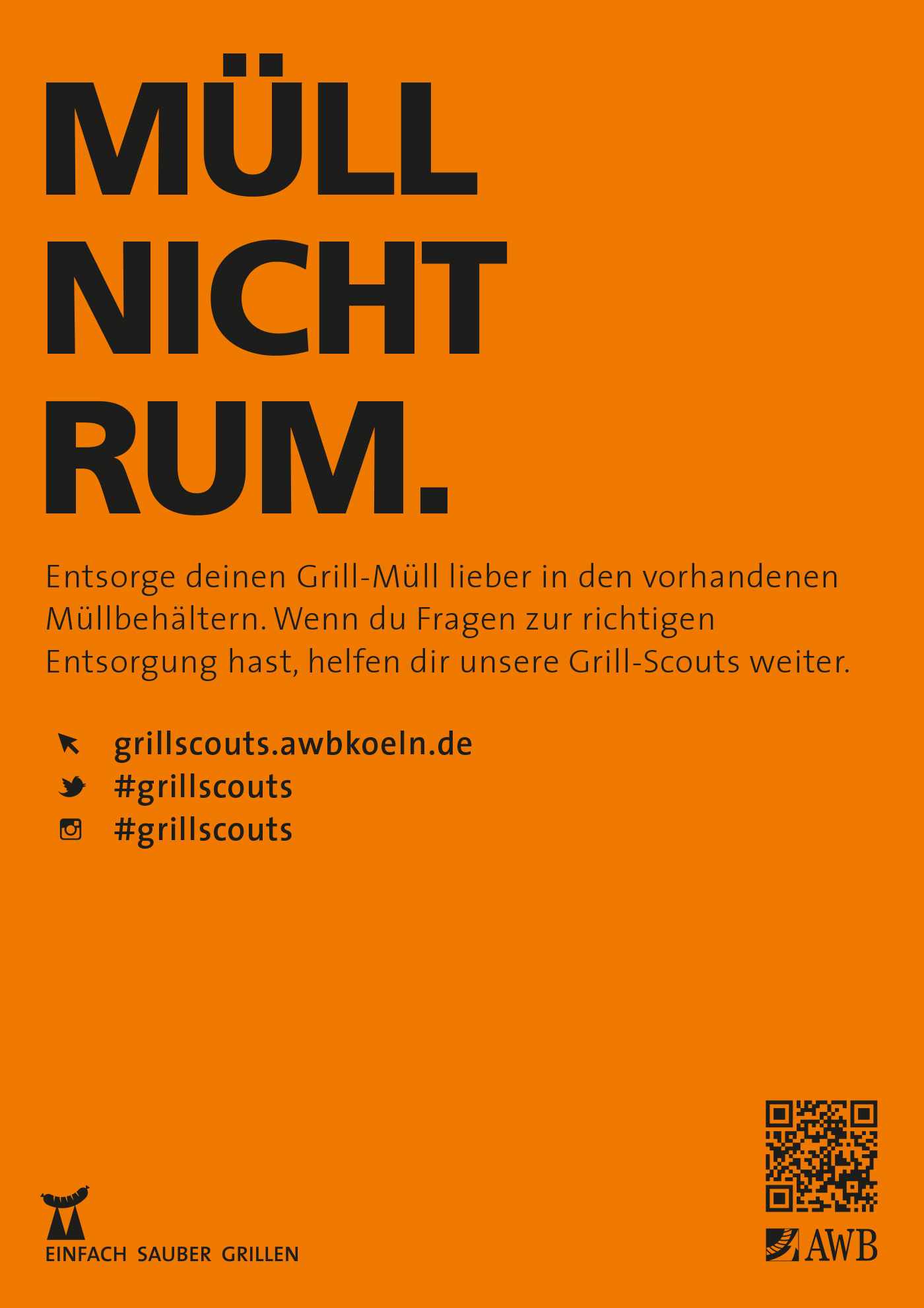 Entwicklung einer Kampagne, mit deren Hilfe die in Köln bereits bekannten AWB Grill-Scouts das vorwiegend jugendliche Publikum dazu motivieren sollen, seine Abfälle sachgerecht zu entsorgen.