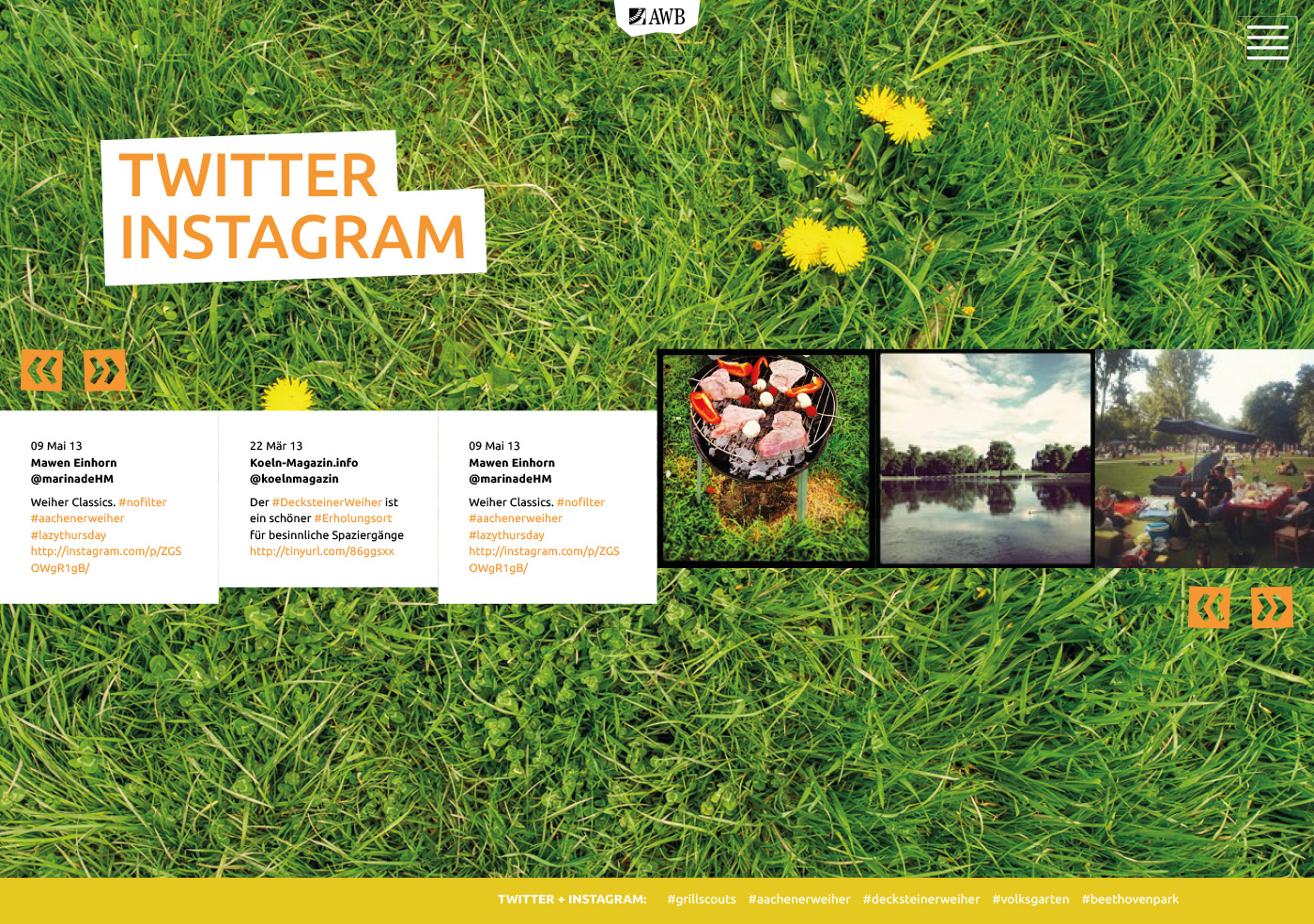 Zu den Maßnahmen der Live-Kampange gehören Beschilderung, Give-aways, Aufklebern inklusive QR-Codes zur digitalen Vernetzung, Mitarbeiter-Branding und einem auffälligen Müllnetz, das das Abfallproblem schnell erfassbar visualisiert. Ergänzend dazu eine Mitmach-Microsite mit Twitter- und Instagram-Anbindung. Dank des responsiven Designs können die Grill-Scouts den Grillenden die Microsite auf den mitgeführten iPads vorführen.
