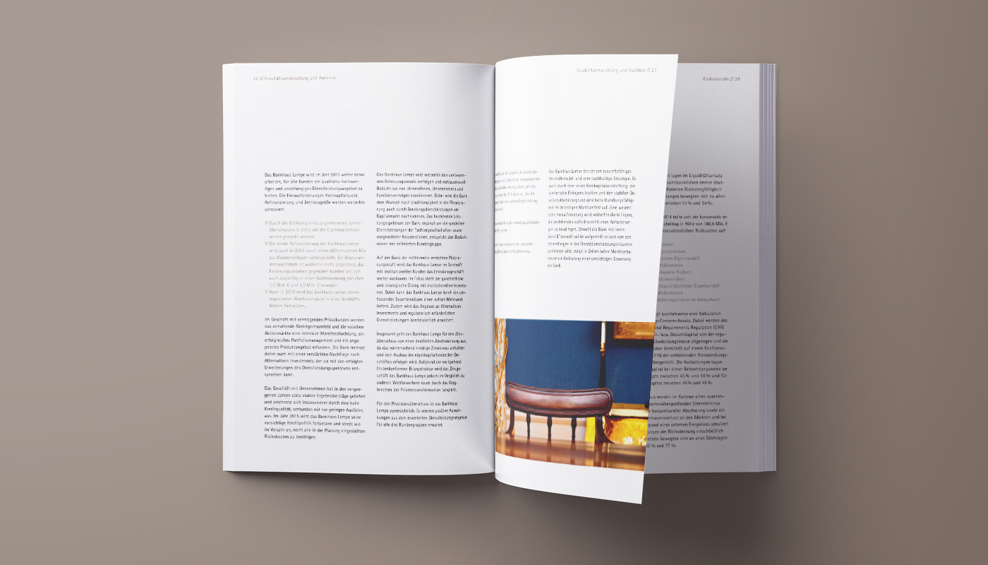 Das Bankhaus Lampe wünscht für die Printmedien ein einheitliches Erscheinungsbild. Also wurde, aufbauend auf einem schematischen Raster ein Broschüren-Konzept mit dazugehörigem Bildkonzept erstellt, welches analog auf Geschäftsberichte, Image-Broschüren, usw. angewendet werden kann.