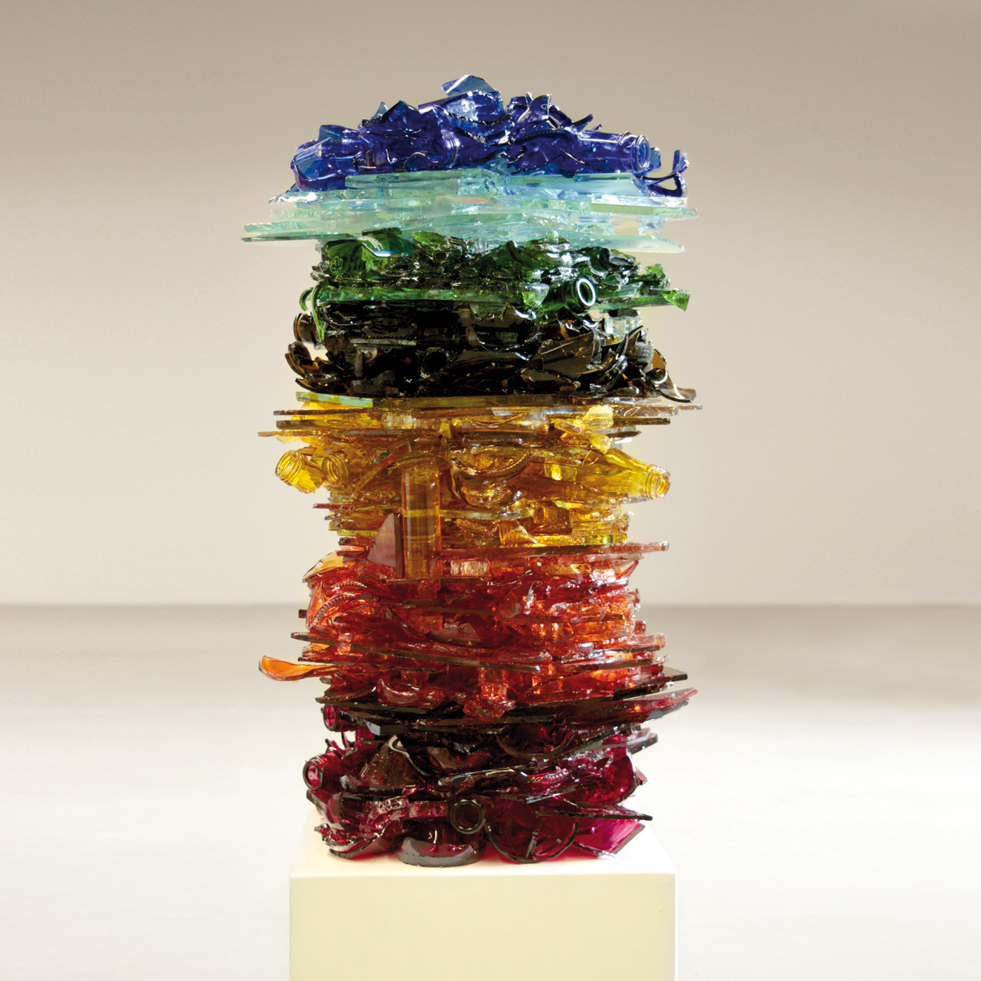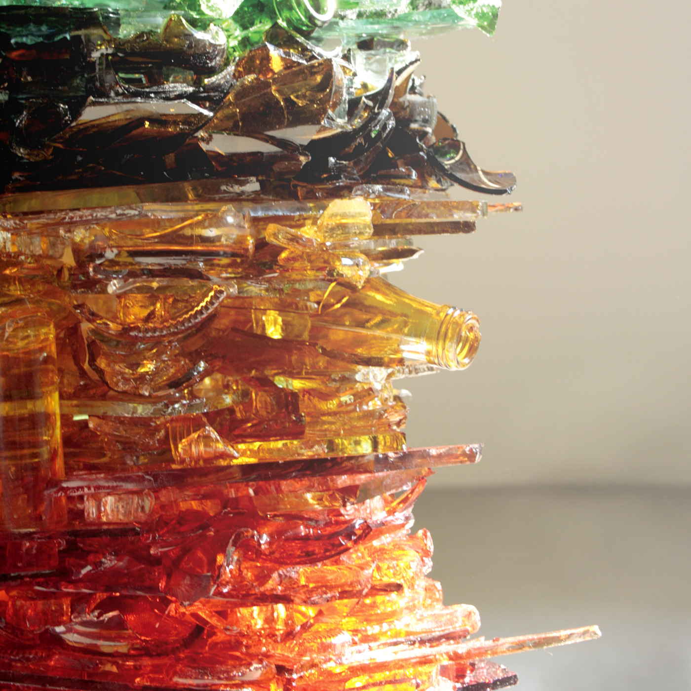 Im Koran steht geschrieben, die Erde besteht ähnlich dem Himmel aus sieben Schichten. In dem von mir entwickelten und gestalteten Objekt sind also die 7 Erdschichten mit Hilfe von Glasscherben abgebildet. Die verschiedenen Farbigkeiten von Glas stellen dabei die einzelnen Erdschichten dar.