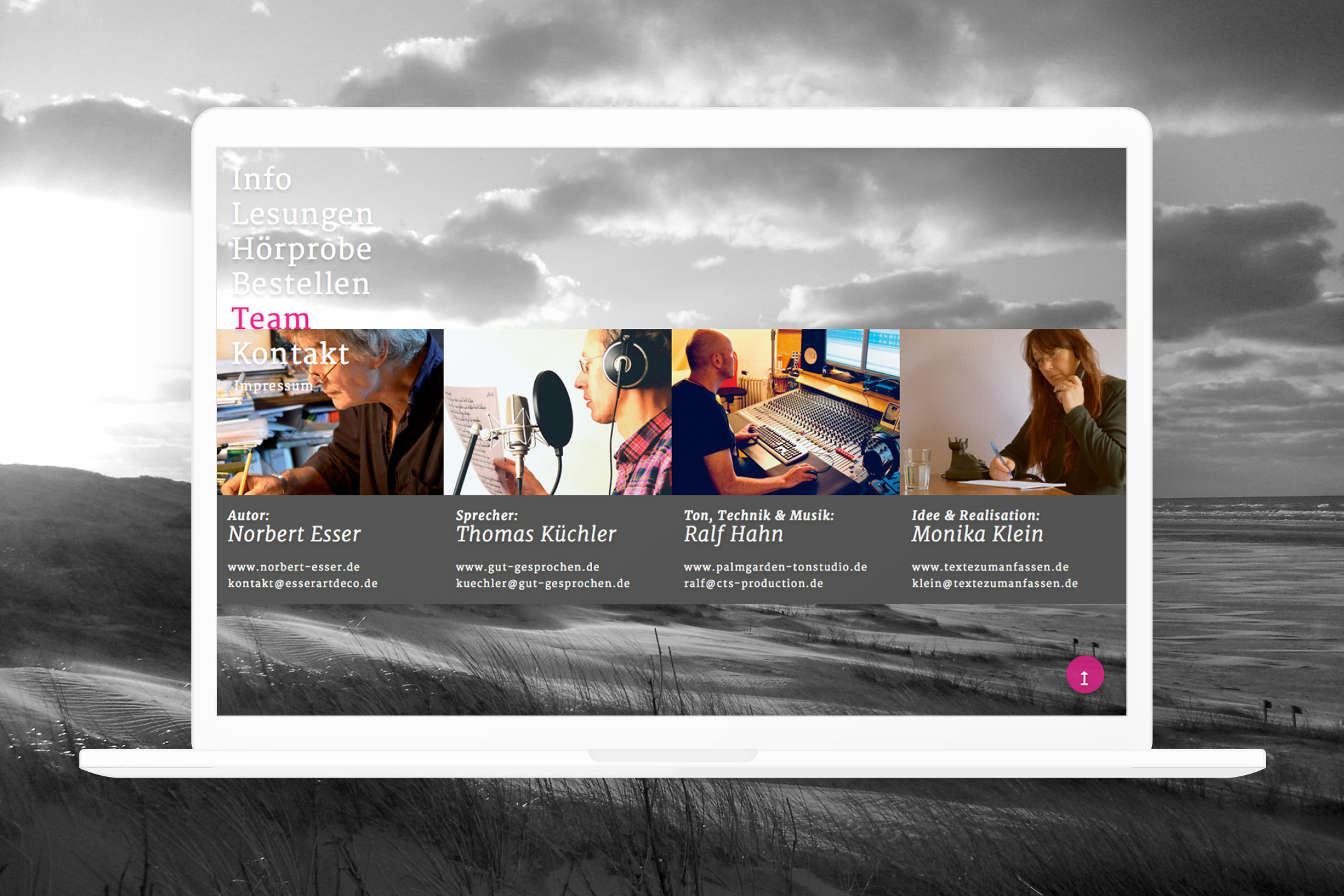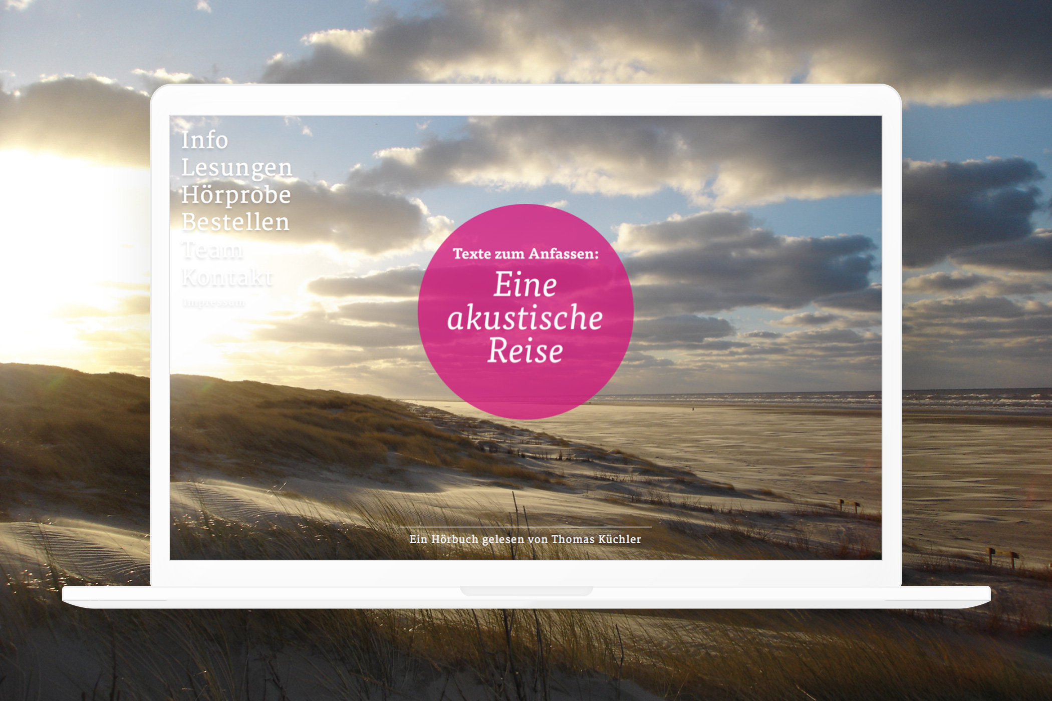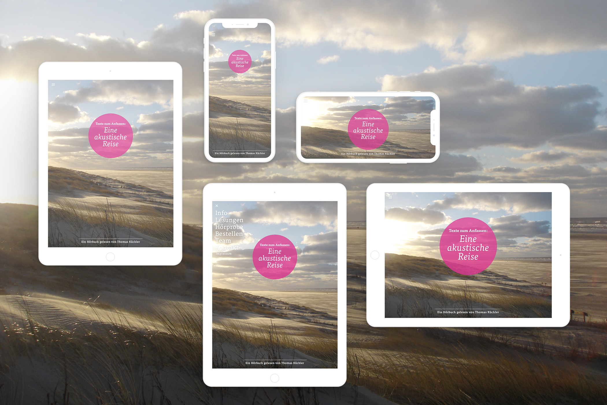 Nachdem Matthes Zimmermann das Cover des Hörbuchs gestaltet hat, habe ich auf dieser Grundlage die dazugehörige Website entwickelt und umgesetzt.