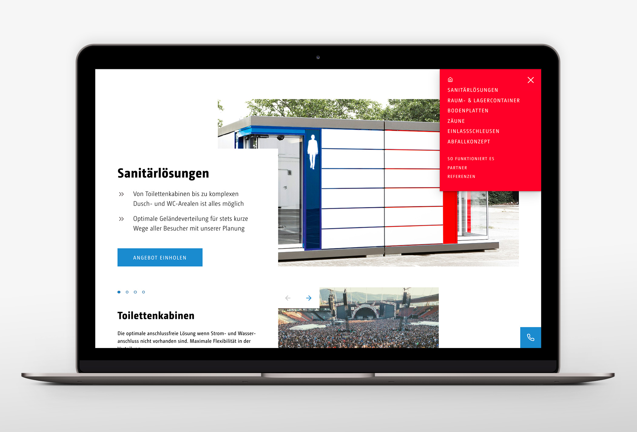 Für den Schweizweiten Markt wurde eine Microsite entwickelt, die das komplette Angebot aufzeigt, mit der die TOI TOI Event Services als Spezialisierter Partner die Infrastruktur für ein Event aus einer Hand abdeckens.